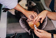| 昨年10月30日にコアラ(愛称クミ、メス、当時8歳)の膀胱結石摘出手術を実施しました。国内では初の試みでしたが、手術は無事成功し、今では普通どおりの生活を送っています。この手術の様子を写真で説明します。 |
