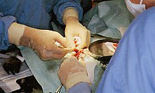 (8)膀胱結石を摘出し、膀胱・腹壁に続いて皮膚を縫合しました。 |